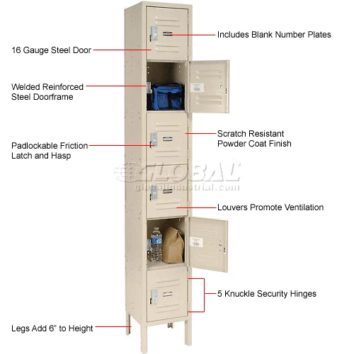 SKU: Global Industrial WB652054TN Categories: Lockers, Standard Lockers Tags: 1 Wide, Global Industrial, Padlock Hasp & Built-in Lock Latch, Six Tier, Steel, Storage & Shelving, Tan, Unassembled