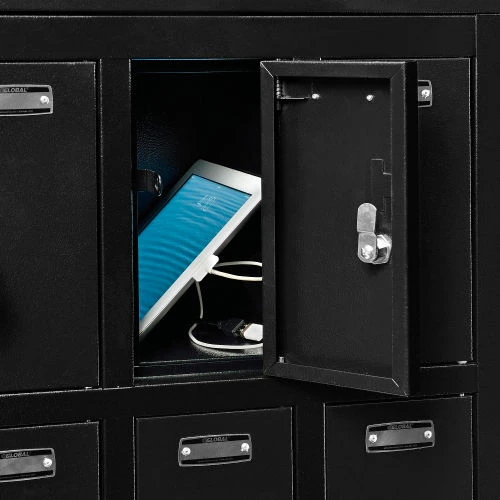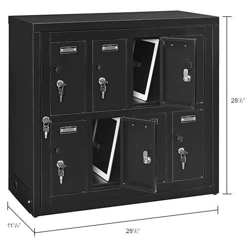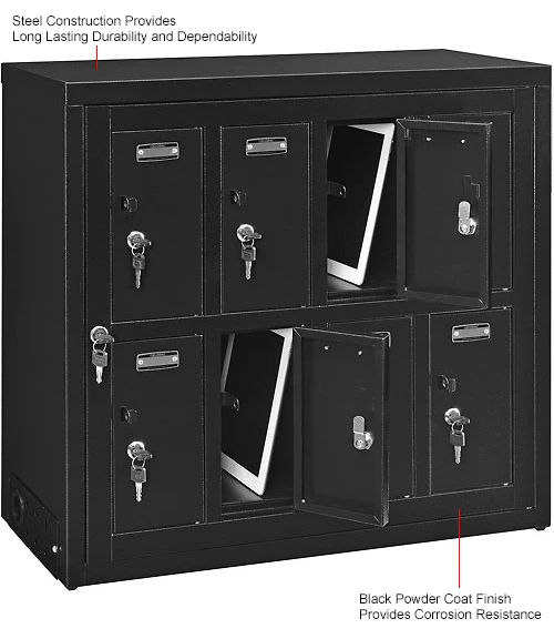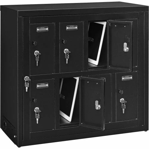 Global Industrial 8-Door Device Locker With Key Lock, 28-1/2"W x 11-1/4"D x 26-3/4"H, Black