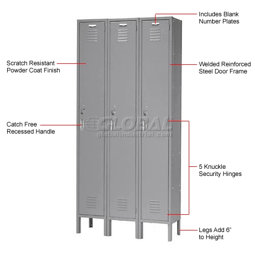 Optional locker accessories (Numbered Plates, Closed End Bases, Slope Top Kits and Locks) sold separately. Due to various layouts these locker accessories are not installed and ship in a separate box. Note: When installing optional Numbered Plates, removing the blank number plates is required.
