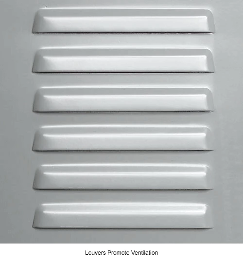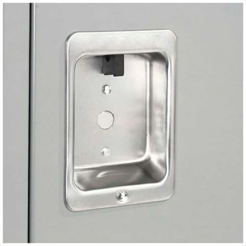 Door handle with fingertip lift latch is recessed into the door face to create a smooth catch-free surface, to discourage the padlock from being cut off and to provide a neat, clean look. The results are improved safety, security and appearance. These quality lockers feature 16 gauge steel doors, 5-knuckle security hinge and welded, reinforced frame-and-door assemblies. Extra wide louvers promote ventilation. Lockers must be anchored securely to floors. 1-wide and 3-wide lockers have four foot plates included. Foot plates bolt to outside locker leg supports and maybe anchored to the floor. Anchors sold separately. Legs add 6″ to height. Includes blank number plates. Lockers have secure 3-point positive locking system, hat shelf, stainless steel door latch and double and single-prong coat hooks (the 18″ deep model also includes a coat rod).