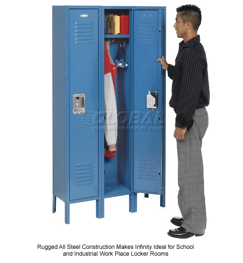 Lockers have secure 3-point positive locking system, hat shelf, stainless steel door latch and one double and two single-prong coat hooks (the 18″ deep model also includes a coat rod). Includes blank number plates. Assembled lockers are not returnable.