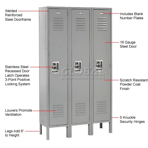 SKU: Global Industrial WB254116GY Categories: Lockers, Standard Lockers Tags: 3 Wide, Global Industrial, Gray, Padlock Hasp & Built-in Lock Latch, Single Tier, Steel, Storage & Shelving, Unassembled