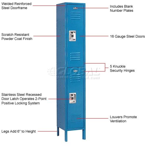 SKU: Global Industrial WB254123BL Categories: Lockers, Standard Lockers Tags: 1 Wide, Blue, Double Tier, Global Industrial, Padlock Hasp & Built-in Lock Latch, Steel, Storage & Shelving, Unassembled