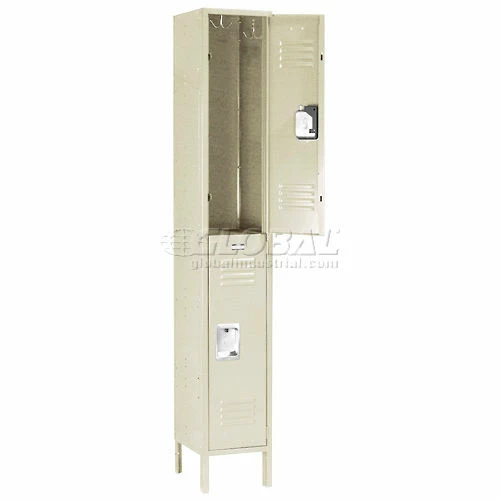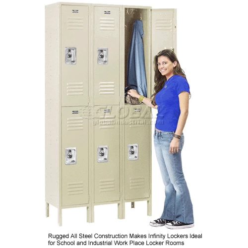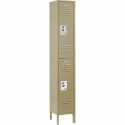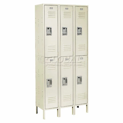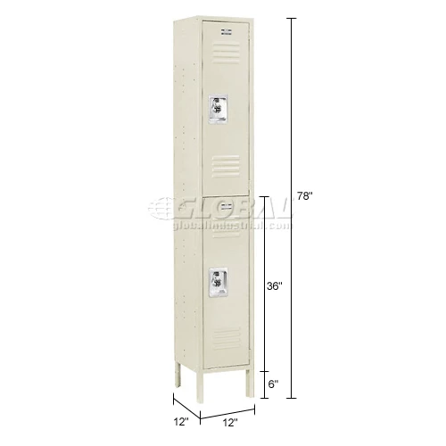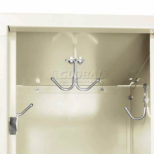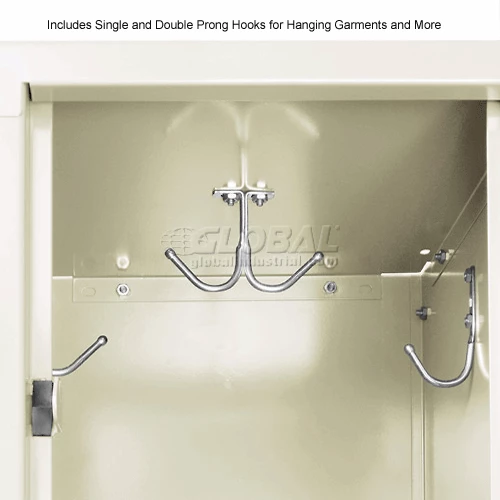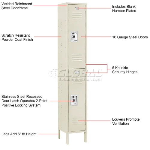 Lockers have secure 3-point positive locking system, hat shelf, stainless steel door latch and one double and two single-prong coat hooks. Includes blank number plates. Assembled lockers are not returnable.