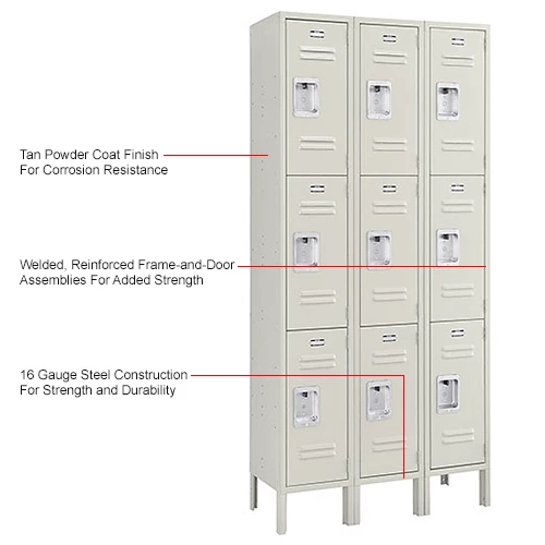 SKU: Global Industrial WB493414TN Categories: Lockers, Standard Lockers Tags: 3 Wide, Global Industrial, Padlock Hasp & Built-in Lock Latch, Steel, Storage & Shelving, Tan, Triple Tier, Unassembled