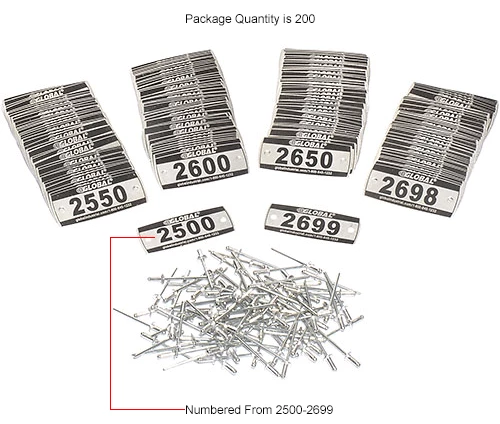 Global Locker Number Plate Kit – Pkg of 200 Numbered 2500-2699