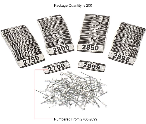 Global Locker Number Plate Kit – Pkg of 200 Numbered 2700-2899