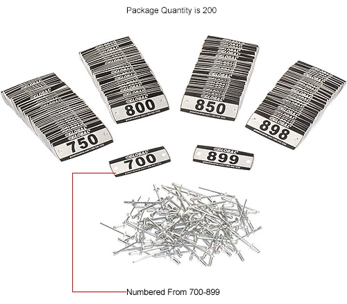 Global Locker Number Plate Kit – Pkg of 200 Numbered 700-899