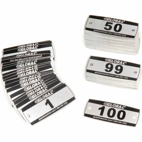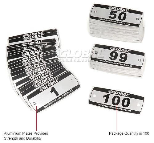 Global™ Locker Number Plate Kit – Pkg Of 100 Numbered 1-100 W/Rivet Gun