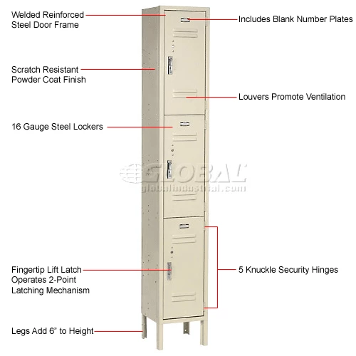 Be the first to review “Global Industrial Paramount® 3-Tier 3 Door Locker, 12"Wx15"Dx24"H, Tan, Unassembled” Cancel reply
