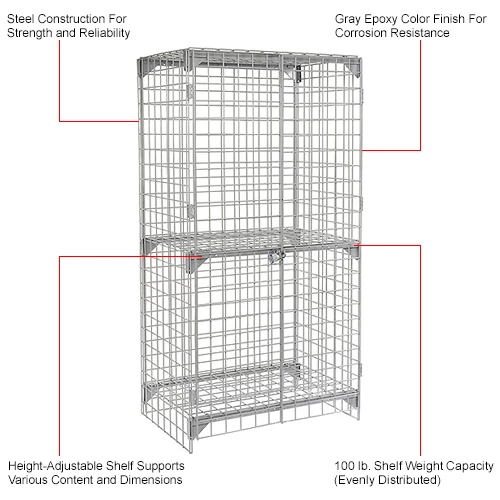 SKU: Global Industrial WB184086 Categories: Bulk Storage Lockers, Lockers Tags: 1 Wide, 100 (Evenly Distributed) lbs, Global Industrial, Gray, Single Tier, Storage & Shelving, Wire Mesh, Wire Mesh Cage
