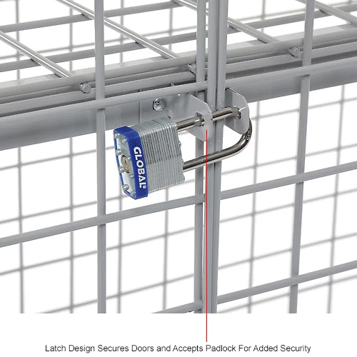 Ventilated Wide Span Bulk Storage Lockers are made with a 3″ x 3″ x 1/4″ thick wire mesh with gray epoxy finish to minimize dust accumulation and maximize visibility for simple inventory control. Lockers include one height-adjustable shelf with 100 lb. capacity evenly distributed. Shelf adjusts in 3″ increments. Improved latch design to accept padlock. For enhanced security, install shelf at center position to allow use of included padlock. Double doors are welded to side panels and are flush against unit top. Door hinges swing open 270° for full access to interior. Easy assembly. Choose from a variety of sizes. Additional shelves sold separately.