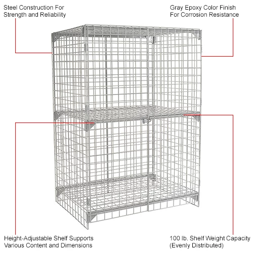 Global Industrial Wire Mesh Security Cage Locker, 48"Wx24"Dx72"H, Gray, Unassembled