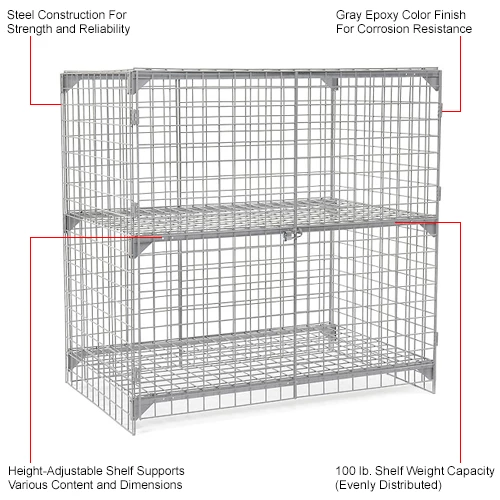 SKU: Global Industrial WB184101 Categories: Bulk Storage Lockers, Lockers Tags: 1 Wide, 100 (Evenly Distributed) lbs, Global Industrial, Gray, Single Tier, Storage & Shelving, Wire Mesh, Wire Mesh Cage