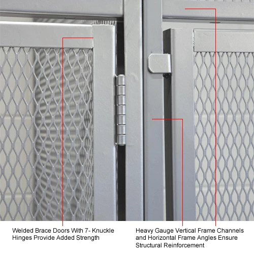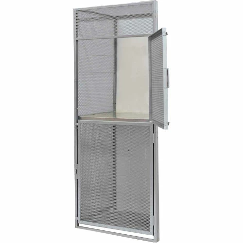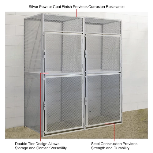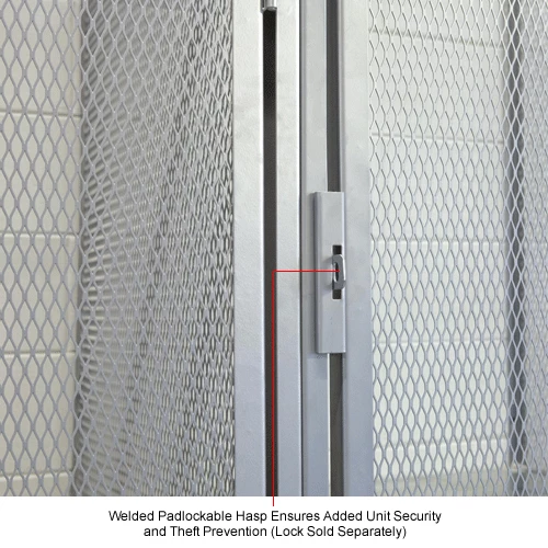 Bulk condo tenant storage locker provides secure storage to any facility – apartment, condo, hotels, hospitals, military, government, an business tenants. . An ideal way to secure resident’s personal items in multi-family building common storage areas. Eliminate clutter and allow for proper aisle space throughout common storage areas. All steel storage locker offers easy installation while providing maximum security and strength. Ventilated locker allows light, air and sprinkler penetration. Bulk locker is made using 1/2″ x 16 gauge flattened expanded metal doors and sides. Heavy gauge vertical frame channels and horizontal frame angles provide extra reinforcement. Doors feature welded brace and heavy duty 13 gauge, 7-knuckle hinges for strength. Welded padlockable hasp (lock sold separately) and ergonomic door pull for security. 13″ transom on top of doors provide added overhead space. 22 gauge steel shelf separates 2 locker compartments. Silver powder coat finish. Locker is easily wall mounted to eliminate need for locker back panel (hardware not included). Add-On Locker can be easily attached to starter locker or other add-ons to create aisles or rows of multiple lockers connected side-by-side or back-to-back. 2 Year Limited Warranty.