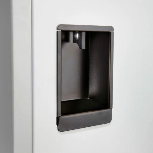 Lock it up with style These contemporary two tone lockers will fit into any environment. Strong, one piece uni-body design boasts a heavy gauge all steel construction so it can stand up to tough conditions in a locker room or anywhere extra, secure storage is needed. Units can be used as stand alone or can be linked together. Recessed handle with padlock provision has no protruding parts. Users provide their own padlock for maximum security. Two tone tan. Lockers come fully assembled.
