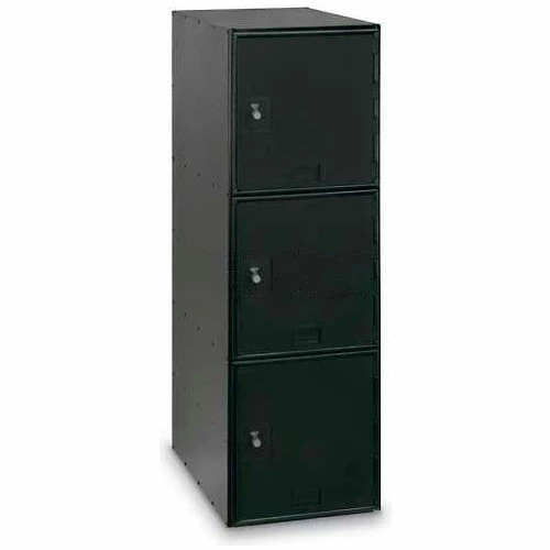 Box Lockers with Combination Lock. These modular storage lockers provide quiet operation. Modular lockers are great for offices, schools, gymnasiums, warehouses and more! These modular storage lockers can be stacked and placed side-by-side to create various locker room configurations. Box lockers have a durable black finished steel frame with 1/2″ thick black polycarbonate doors that offer quiet operation. Combination lock for security. These single wide box lockers include three 11-1/2″W x 17-3/8″D x 12-1/2″H compartments. Measures 11-1/2″W x 18″D x 38″H overall. Ships Assembled.