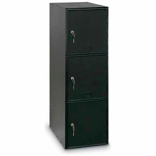 Box Lockers with Key Lock. These modular storage lockers provide quiet operation. Modular lockers are great for offices, schools, gymnasiums, warehouses and more! These modular storage lockers can be stacked and placed side-by-side to create various locker room configurations. Box lockers have a durable black finished steel frame with 1/2″ thick black polycarbonate doors that offer quiet operation. Key lockable door has a cylinder lock with 2 keys for security. These single wide box lockers include three 11-1/2″W x 17-3/8″D x 12-1/2″H compartments. Measures 11-1/2″W x 18″D x 38″H overall. Ships Assembled.