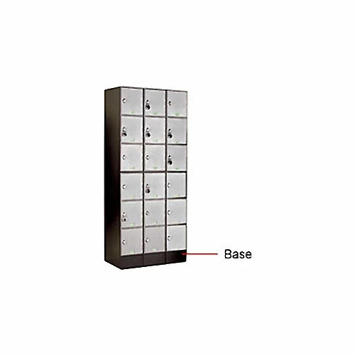 Provides a finished look to modular box lockers. For floor applications. 6″H closed base is made with a durable black finished steel frame. Raised lockers off floor for safety and to minimize dust accumulation and acts as a kickplate. Easy Assembly.