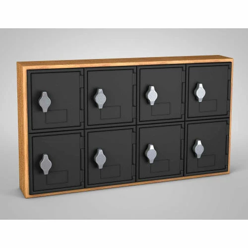 For facilities where it’s necessary to store your personal effects; be it locker rooms, schools, plant floors, federal facilities, or theatres- our new Wood Framed Lockers are just the right fit! The combination of wall mounting and a 4″ deep housing makes these cabinets less conspicuous. It’s a perfect place to put your keys and phone. The end user can pick any unused compartment, put personal items inside, and secure with the padlock (sold separately).