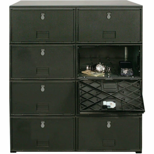 Global Industrial 8-Door Device Locker With Key Lock, 28-1/2"W x 11-1/4"D x 26-3/4"H, Black