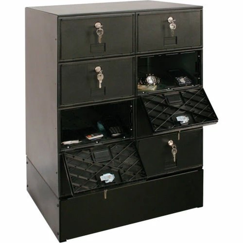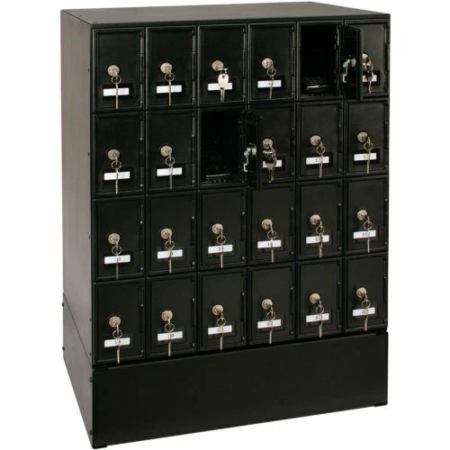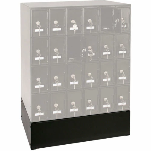 Base raises lockers 6″ off floor to provide added height and convenience. Helps provide easy access to bottom locker compartments. Base allows lockers to be placed or mounted on floors and hard surfaces. Base measures 22″W x 16″D x 6″H overall. Black finish.