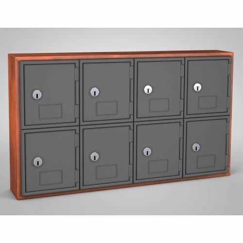 United Visual Cell Phone Locker UVQ1043 – 8 Door 24″ x 4″ x 13-1/2″ Cherry/Grey Door w/Key Lock